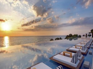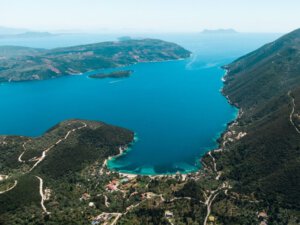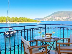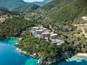 3 beachfront villas facing the sea, in Amousso Bay, Lefkada, Greece.